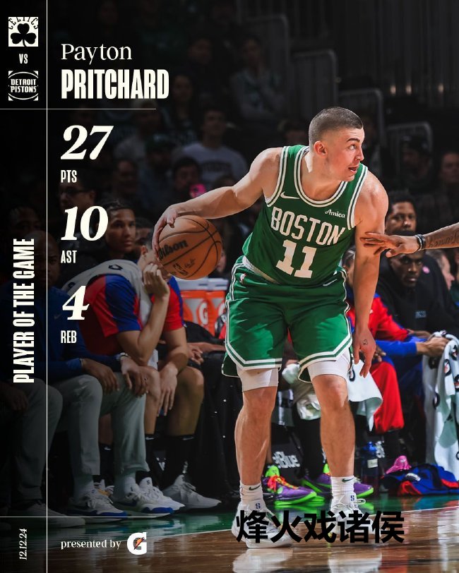 塔图姆休战,普理查德三分球15中7,高效轰下27分4篮板10助攻率队取胜。