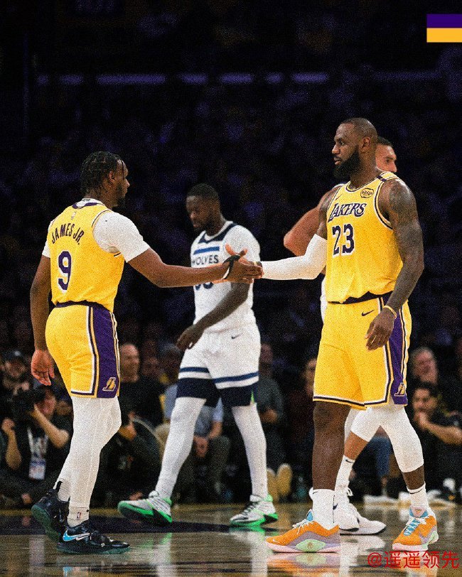 北京时间10月23日,NBA常规赛,湖人主场迎战森林狼。勒布朗-詹姆斯与布朗尼-詹姆斯在第二节比赛同时登场创造历史。