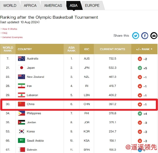 乐鱼体育app 中国男篮排名亚洲第6世界第30 日本排名世界21